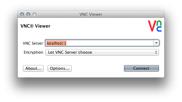 section. In the password section fill in the password you specified in Secure your VNC connection:Press Connect.