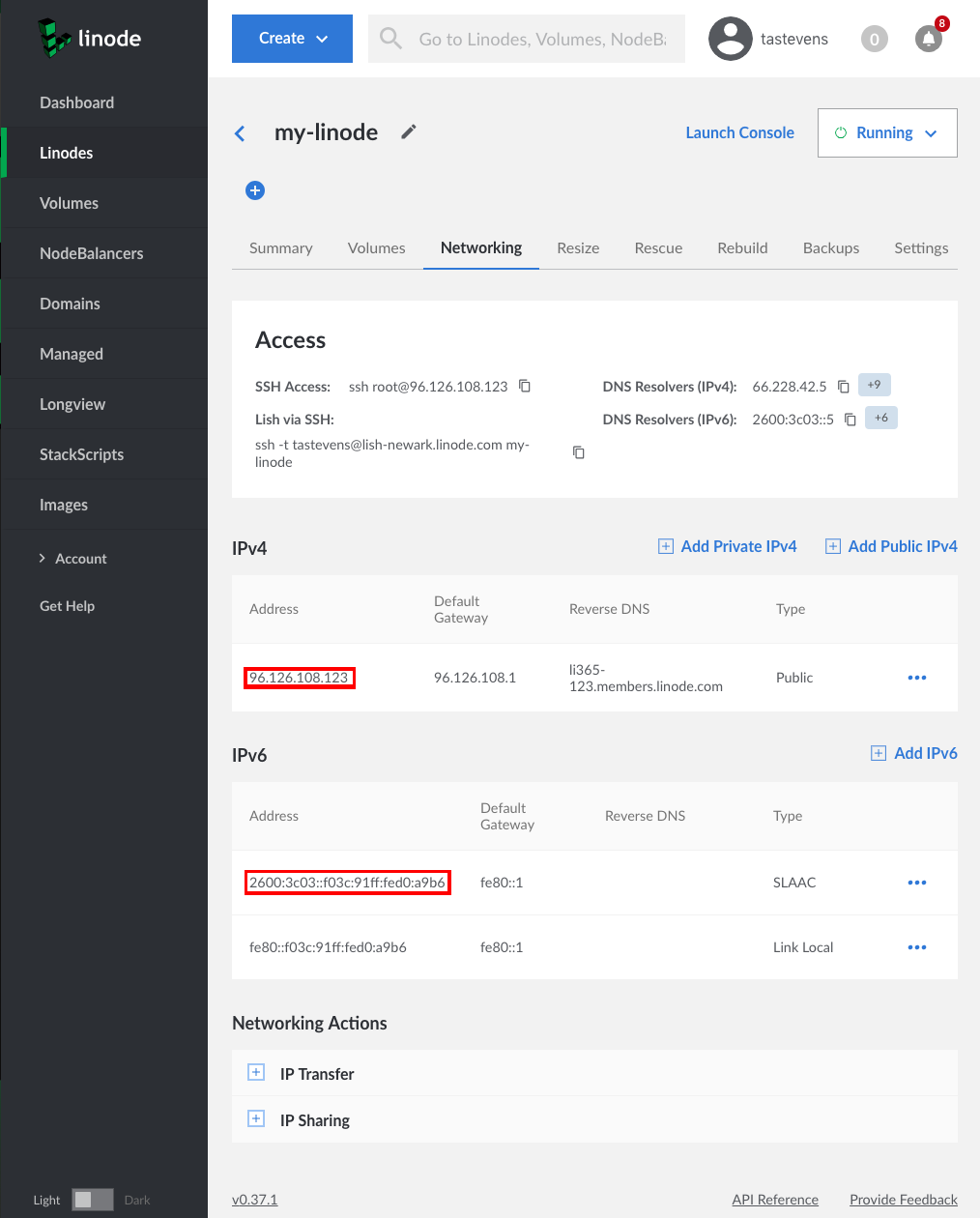 Find your Linode’s IP Address