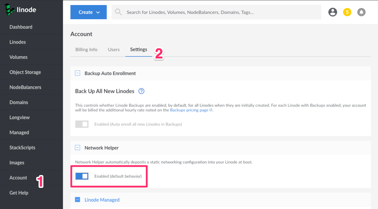 When Network Helper is enabled globally, all new Linodes created on your account will have Network Helper enabled by default.