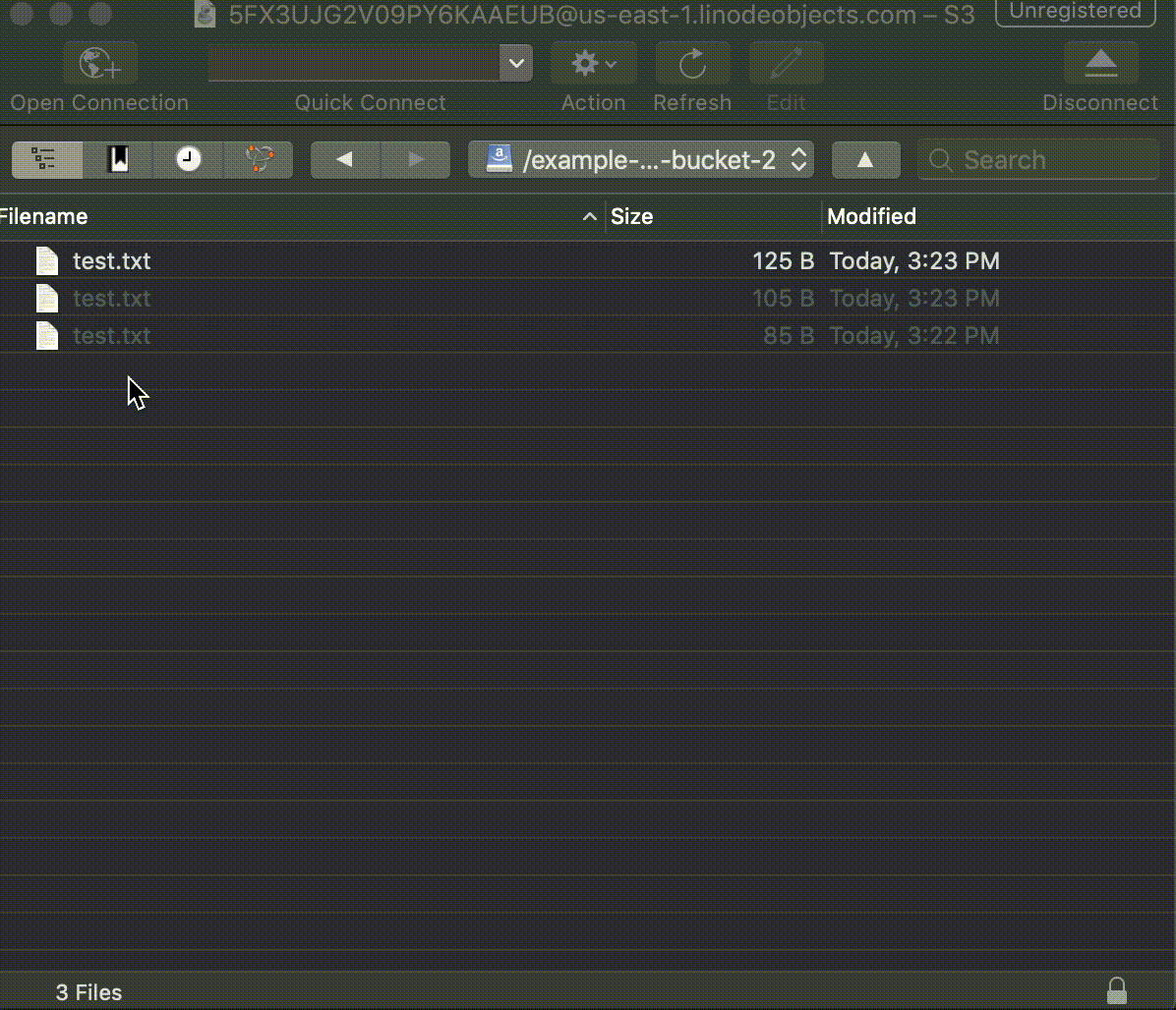Cyberduck is a GUI application that supports a wide variety of file transfer protocols, including S3-compatible Object Storage. For basic Cyberduck functionality, such as creating buckets and uploading objects, consult our How to Use Linode Object Storage guide.